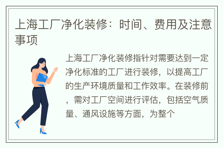 上海工厂净化装修的费用如何计算?