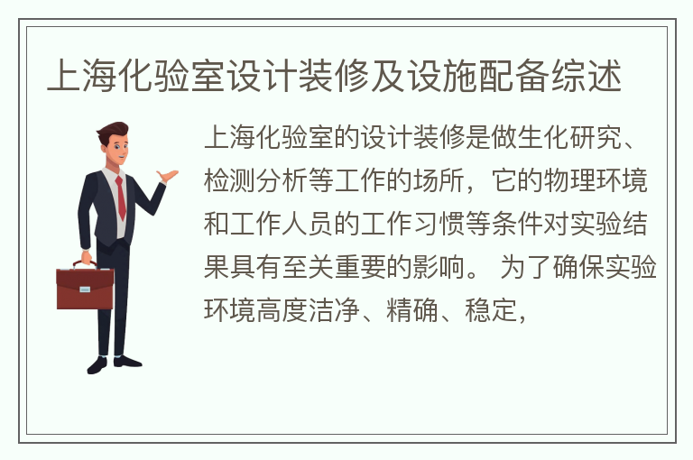 上海化验室的设计装修是做生化研究、检测分析等工作的场所,它的物理环境和工作人员的工作习惯等条件对实验结果具有至关重要的影响。