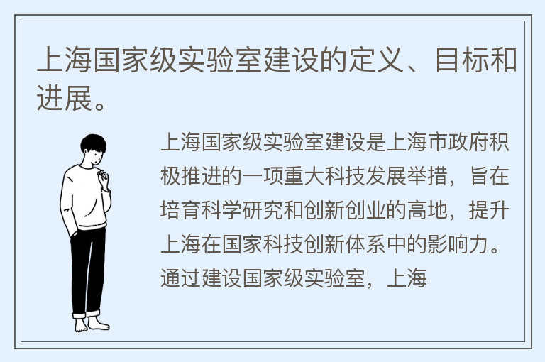 上海国家级实验室建设是上海市政府积极推进的一项重大科技发展举措,旨在培育科学研究和创新创业的高地,提升上海在国家科技创新体系中的影响力。通过建设国家级实验室,上海......【点击详情】