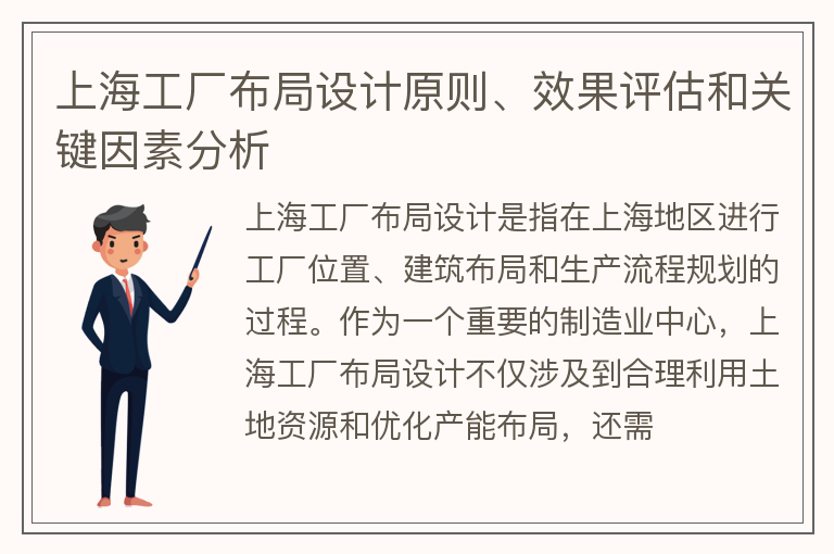 上海工厂布局设计是指在上海地区进行工厂位置、建筑布局和生产流程规划的过程。作为一个重要的制造业中心,上海工厂布局设计不仅涉及到合理利用土地资源和优化产能布局,还需......【点击详情】