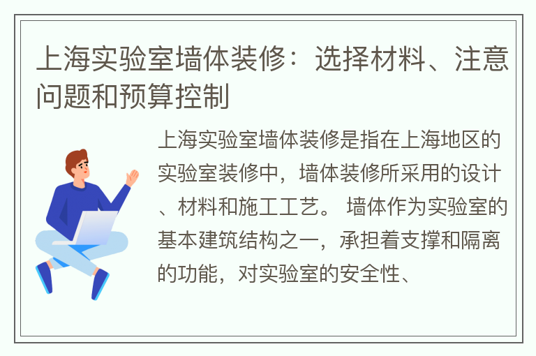 上海实验室墙体装修:选择材料、注意问题和预算控制