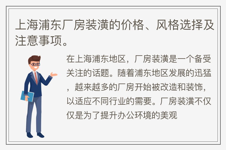 上海浦东厂房装潢的价格、风格选择及注意事项。