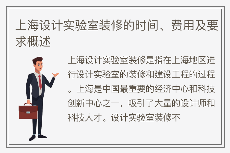 上海设计实验室装修的时间、费用及要求概述
