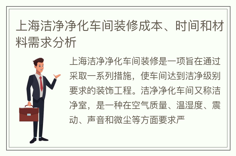 上海洁净净化车间装修成本、时间和材料需求分析