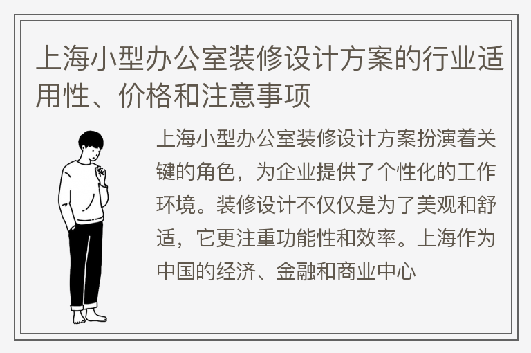 上海小型办公室装修设计方案的行业适用性、价格和注意事项