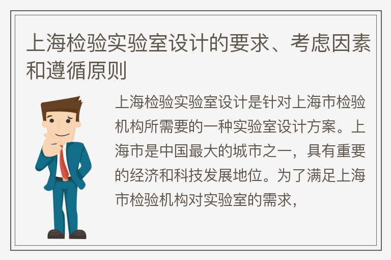上海检验实验室设计的要求、考虑因素和遵循原则