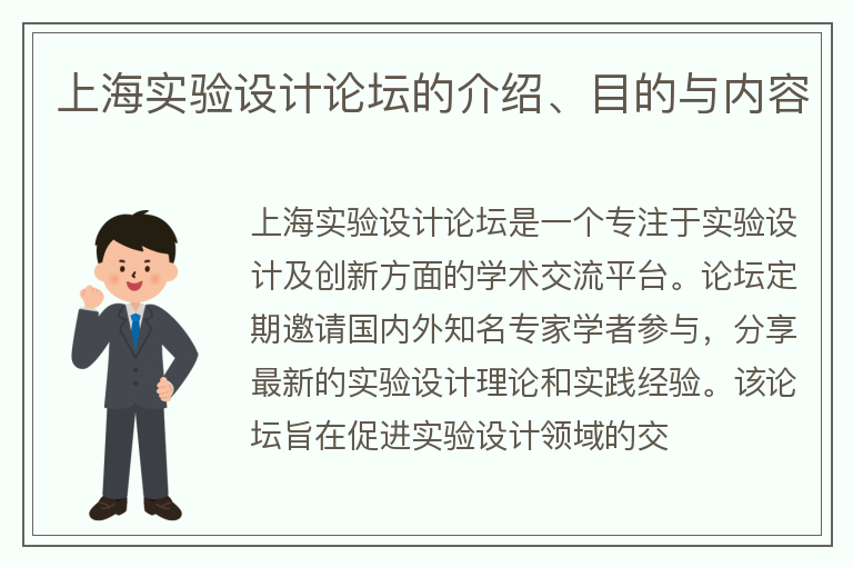 上海实验设计论坛是一个专注于实验设计及创新方面的学术交流平台。论坛定期邀请国内外知名专家学者参与,分享最新的实验设计理论和实践经验。该论坛旨在促进实验设计领域的交......【点击详情】