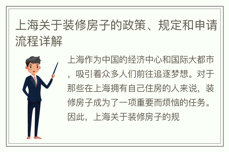 上海关于装修房子的政策、规定和申请流程详解