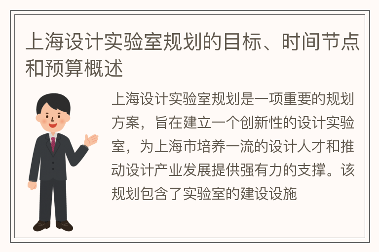 上海设计实验室规划的目标、时间节点和预算概述