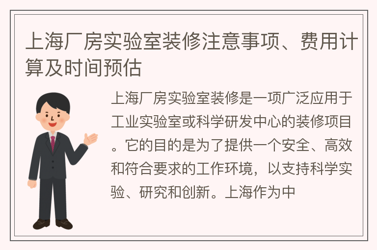 上海实验室装饰装修采购预算、注意事项及时间周期