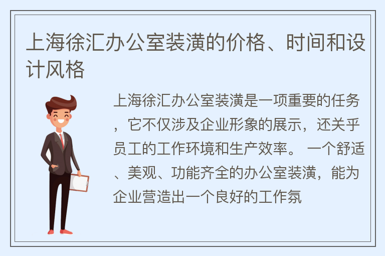 上海徐汇办公室装潢的价格、时间和设计风格