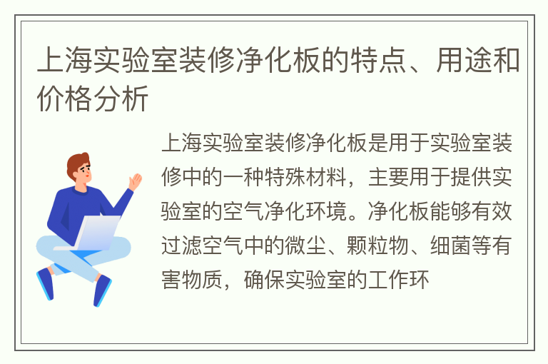上海实验室装修净化板是用于实验室装修中的一种特殊材料,主要用于提供实验室的空气净化环境。净化板能够有效过滤空气中的微尘、颗粒物、细菌等有害物质,确保实验室的工作环......【点击详情】