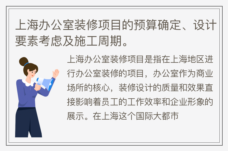 上海办公室装修项目的预算确定、设计要素考虑及施工周期。