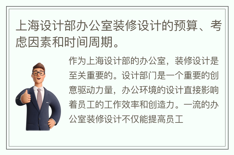 上海设计部办公室装修设计的预算、考虑因素和时间周期。