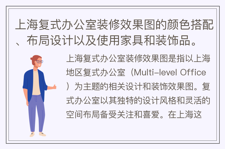 上海复式办公室装修效果图的颜色搭配、布局设计以及使用家具和装饰品。