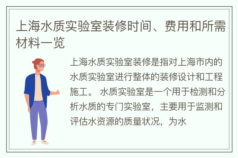 上海水质实验室装修是指对上海市内的水质实验室进行整体的装修设计和工程施工。 水质实验室是一个用于检测和分析水质的专门实验室,主要用于监测和评估水资源的质量状况,为水......【点击详情】