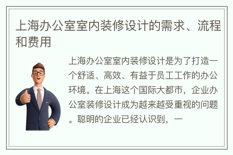 上海办公楼装修是指对上海办公楼内部进行美化和整理,以提升办公环境和工作效率的一项工作。 在上海这座繁华都市,办公楼装修具有重要的意义。一幢高品质的办公楼不仅能为企业......【点击详情】