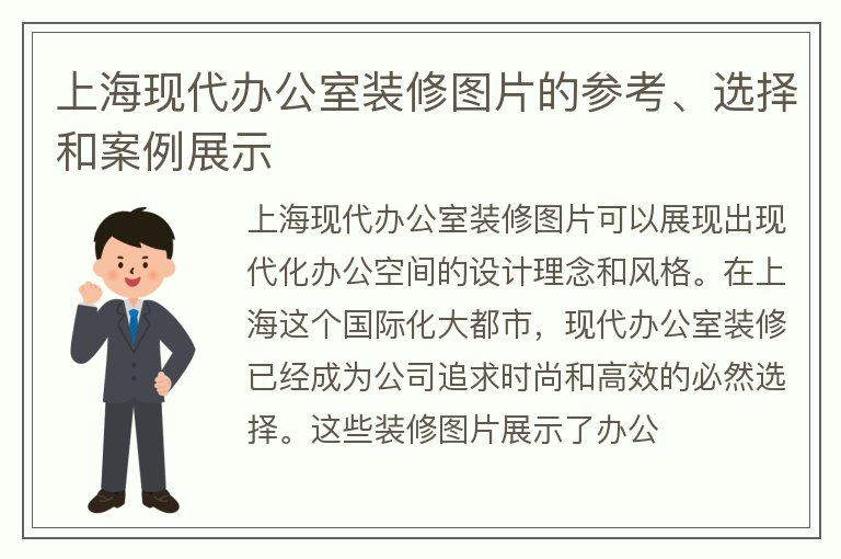 办公室的装饰是为了创造一个舒适、高效的工作环境,上海作为中国经济发展的重要城市之一,其办公室装饰图片展示了不同企业对于办公环境设计的理念和风格。 上海办公室装饰图片......【点击详情】