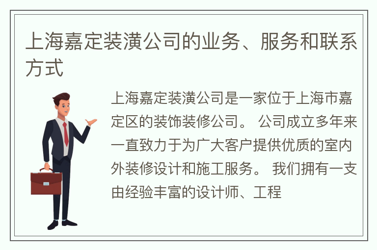 上海嘉定装潢公司的业务、服务和联系方式