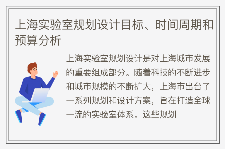 上海实验室规划设计目标、时间周期和预算分析