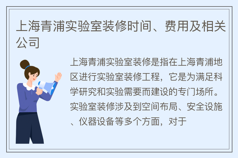 上海青浦实验室装修时间、费用及相关公司