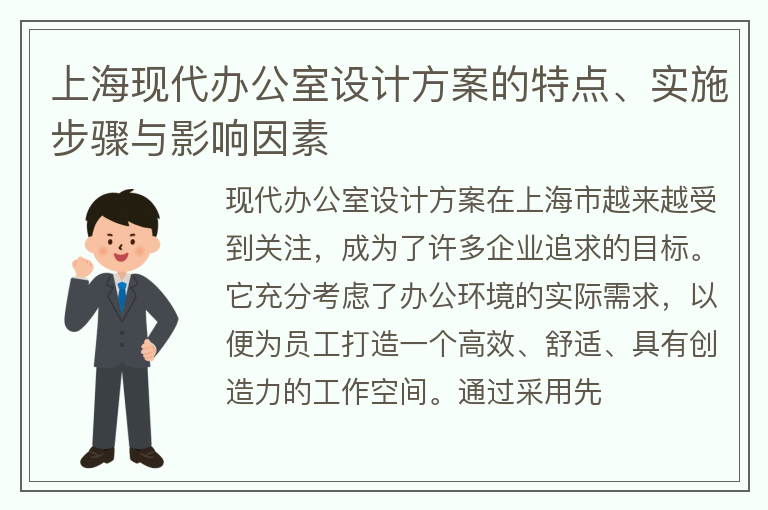 上海现代办公室设计方案的特点、实施步骤与影响因素