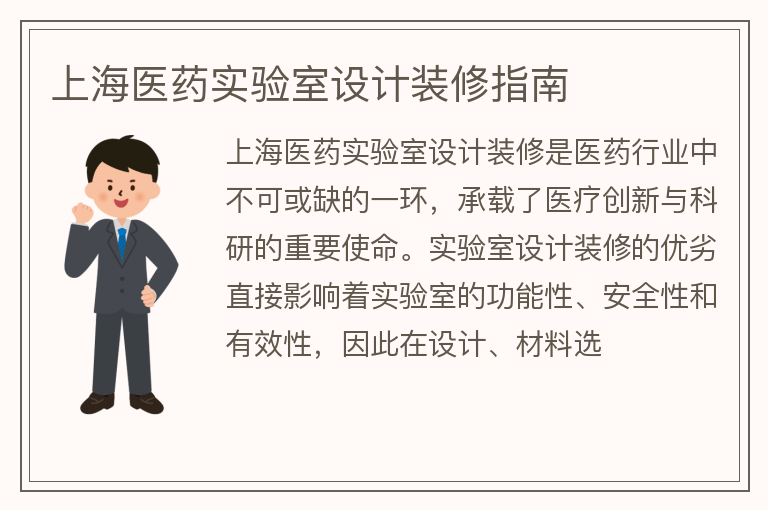 上海医药实验室设计装修是医药行业中不可或缺的一环,承载了医疗创新与科研的重要使命。实验室设计装修的优劣直接影响着实验室的功能性、安全性和有效性,因此在设计、材料选......【点击详情】