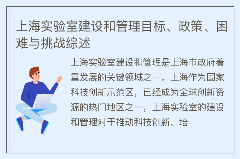 上海实验室建设和管理目标、政策、困难与挑战综述