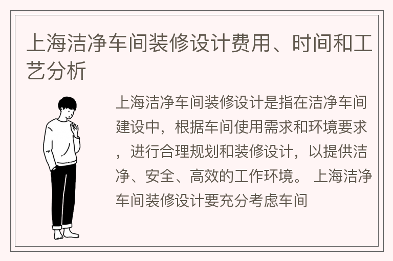 上海洁净车间装修设计是指在洁净车间建设中,根据车间使用需求和环境要求,进行合理规划和装修设计,以提供洁净、安全、高效的工作环境。 上海洁净车间装修设计要充分考虑车间......【点击详情】
