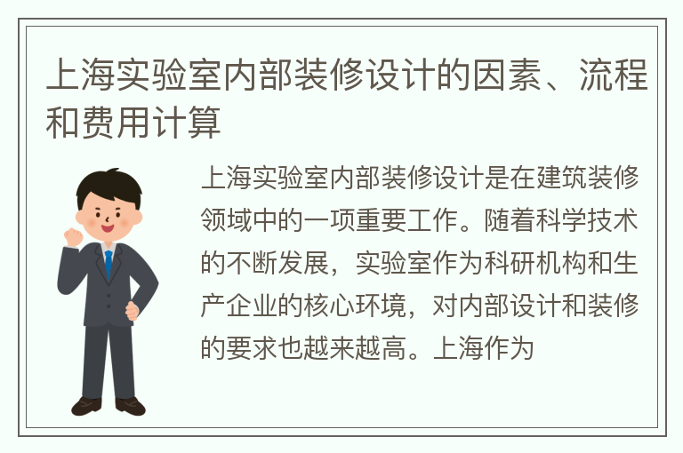 上海实验室内部装修设计是在建筑装修领域中的一项重要工作。随着科学技术的不断发展,实验室作为科研机构和生产企业的核心环境,对内部设计和装修的要求也越来越高。上海作为......【点击详情】