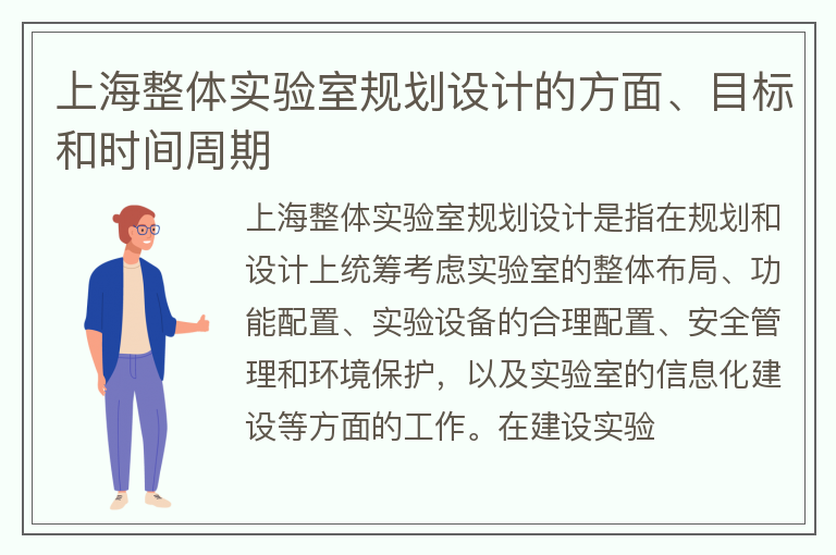 上海整体实验室规划设计是指在规划和设计上统筹考虑实验室的整体布局、功能配置、实验设备的合理配置、安全管理和环境保护,以及实验室的信息化建设等方面的工作。在建设实验......【点击详情】