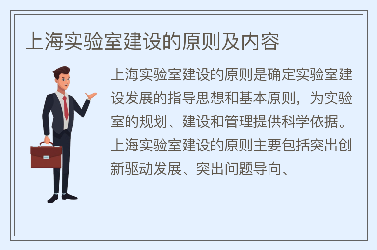 上海实验室建设的原则是确定实验室建设发展的指导思想和基本原则,为实验室的规划、建设和管理提供科学依据。上海实验室建设的原则主要包括突出创新驱动发展、突出问题导向、......【点击详情】