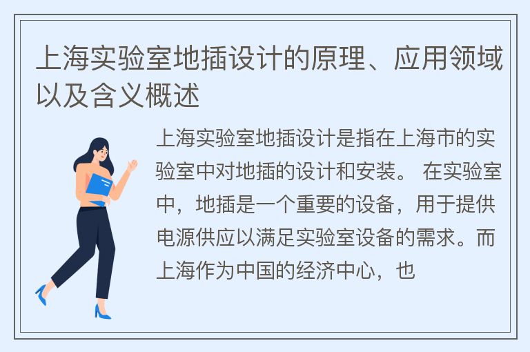 上海实验室地插设计是指在上海市的实验室中对地插的设计和安装。 在实验室中,地插是一个重要的设备,用于提供电源供应以满足实验室设备的需求。而上海作为中国的经济中心,也......【点击详情】
