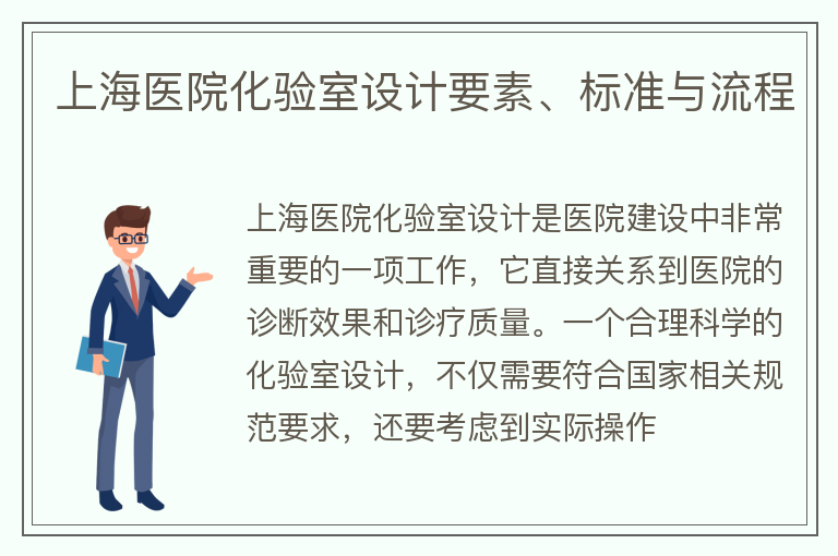 上海医院化验室设计是医院建设中非常重要的一项工作,它直接关系到医院的诊断效果和诊疗质量。一个合理科学的化验室设计,不仅需要符合国家相关规范要求,还要考虑到实际操作......【点击详情】