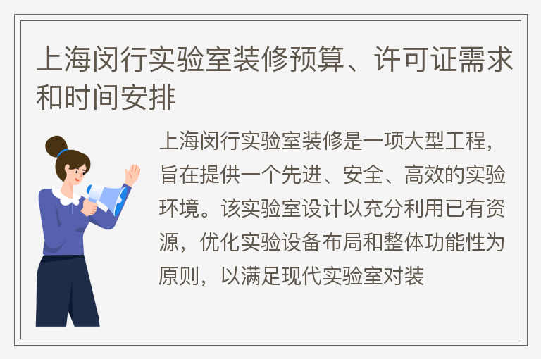上海闵行实验室装修是一项大型工程,旨在提供一个先进、安全、高效的实验环境。该实验室设计以充分利用已有资源,优化实验设备布局和整体功能性为原则,以满足现代实验室对装......【点击详情】