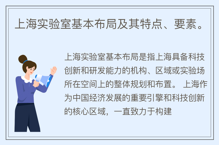上海实验室基本布局是指上海具备科技创新和研发能力的机构、区域或实验场所在空间上的整体规划和布置。 上海作为中国经济发展的重要引擎和科技创新的核心区域,一直致力于构建......【点击详情】