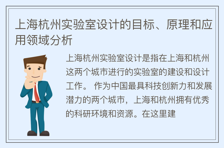上海杭州实验室设计是指在上海和杭州这两个城市进行的实验室的建设和设计工作。 作为中国最具科技创新力和发展潜力的两个城市,上海和杭州拥有优秀的科研环境和资源。在这里建......【点击详情】