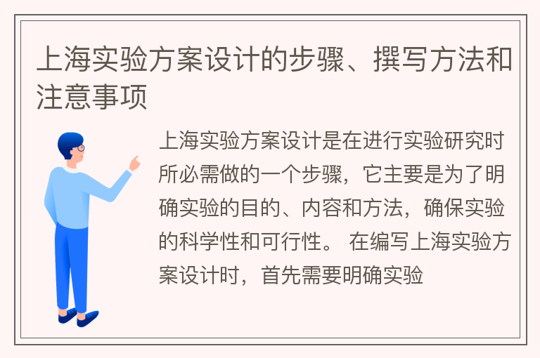 上海实验方案设计的步骤、撰写方法和注意事项