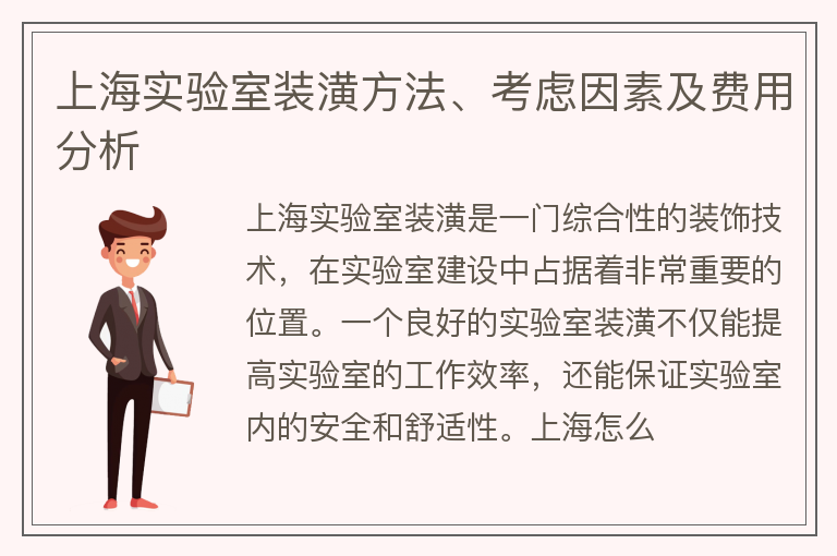 上海实验室装潢方法、考虑因素及费用分析