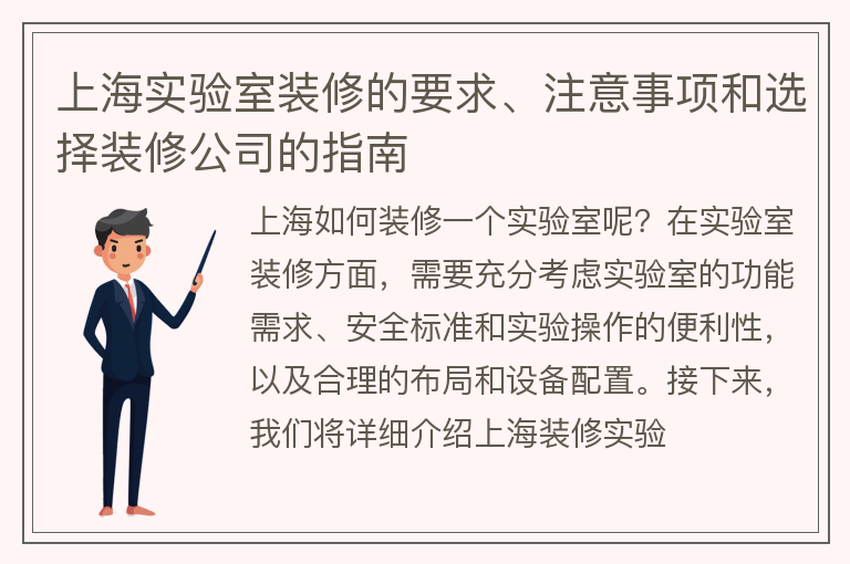 上海实验室装修的要求、注意事项和选择装修公司的指南