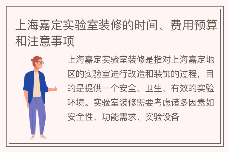 上海嘉定实验室装修的时间、费用预算和注意事项