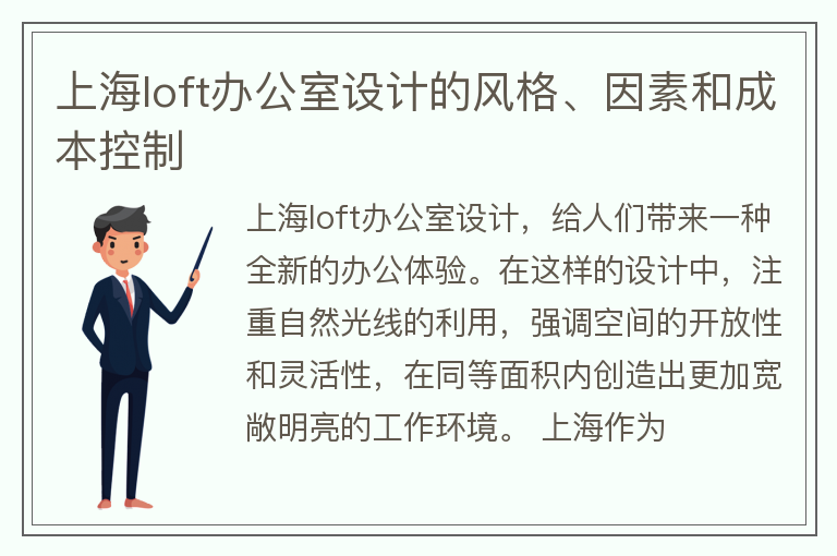 上海loft办公室设计,给人们带来一种全新的办公体验。在这样的设计中,注重自然光线的利用,强调空间的开放性和灵活性,在同等面积内创造出更加宽敞明亮的工作环境。 上海作为......【点击详情】