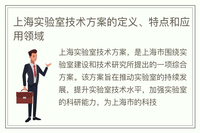 上海实验室技术方案,是上海市围绕实验室建设和技术研究所提出的一项综合方案。该方案旨在推动实验室的持续发展,提升实验室技术水平,加强实验室的科研能力,为上海市的科技......【点击详情】