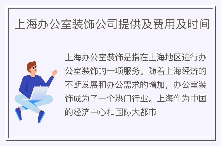 上海办公室装饰是指在上海地区进行办公室装饰的一项服务。随着上海经济的不断发展和办公需求的增加,办公室装饰成为了一个热门行业。上海作为中国的经济中心和国际大都市......【点击详情】