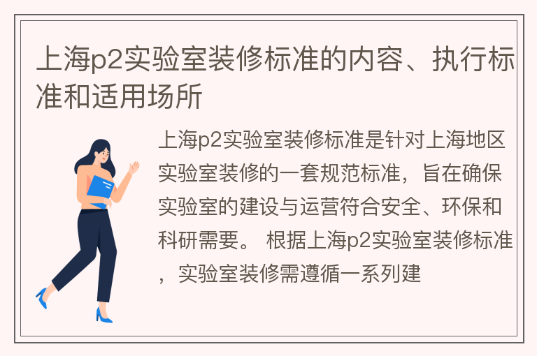上海p2实验室装修标准的内容、执行标准和适用场所