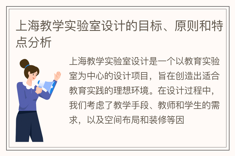 上海教学实验室设计是一个以教育实验室为中心的设计项目,旨在创造出适合教育实践的理想环境。在设计过程中,我们考虑了教学手段、教师和学生的需求,以及空间布局和装修等因......【点击详情】