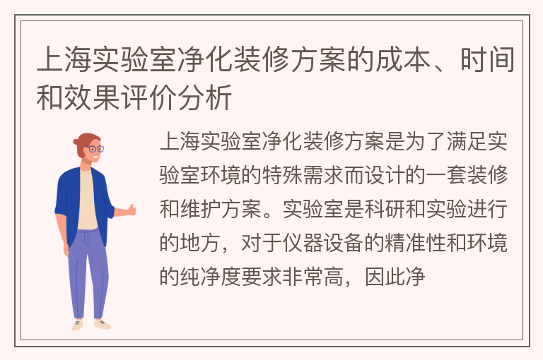 上海实验室净化装修方案的成本、时间和效果评价分析