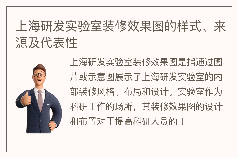 上海研发实验室装修效果图的样式、来源及代表性