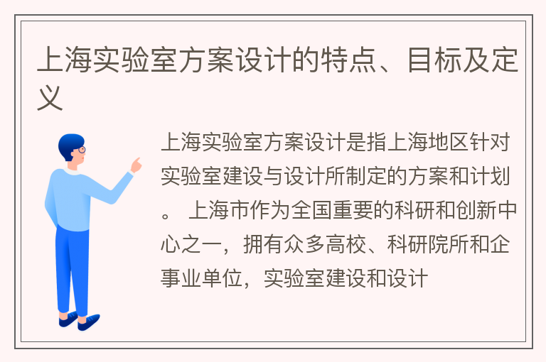 上海实验室方案设计的特点、目标及定义