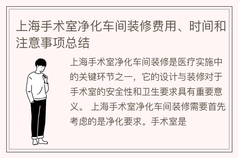 上海手术室净化车间装修费用、时间和注意事项总结